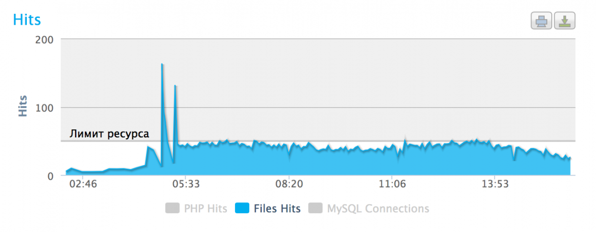 Важно: лимит на тарифе (например 50 запросов в секунду c Первого по Шестой тариф) - это не ограничение запросов к файлам вашего сайта в количествах в секунду. 50 одновременых запросов к сайту это - 180000 запросов (hits) в час. Превышение этого лимита - показатель наличия серьезной проблемы на вашем сайте.